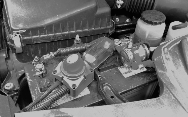 Благодаря реле и переключателям, дополнительный аккумулятор имеет теперь свои «настройки». Может работать как в паре с основным, питать дополнительное оборудование так и быть просто резервным, подзаряжаясь от основной цепи. Цель - повышение автономности. Если после стоянки аккумулятор "сядет в ноль" всегда будет возможность завестись со второго аккума. Предусмотрен легкий доступ к обслуживанию и замене батареи за счет быстросъемного «навесного» оборудования.